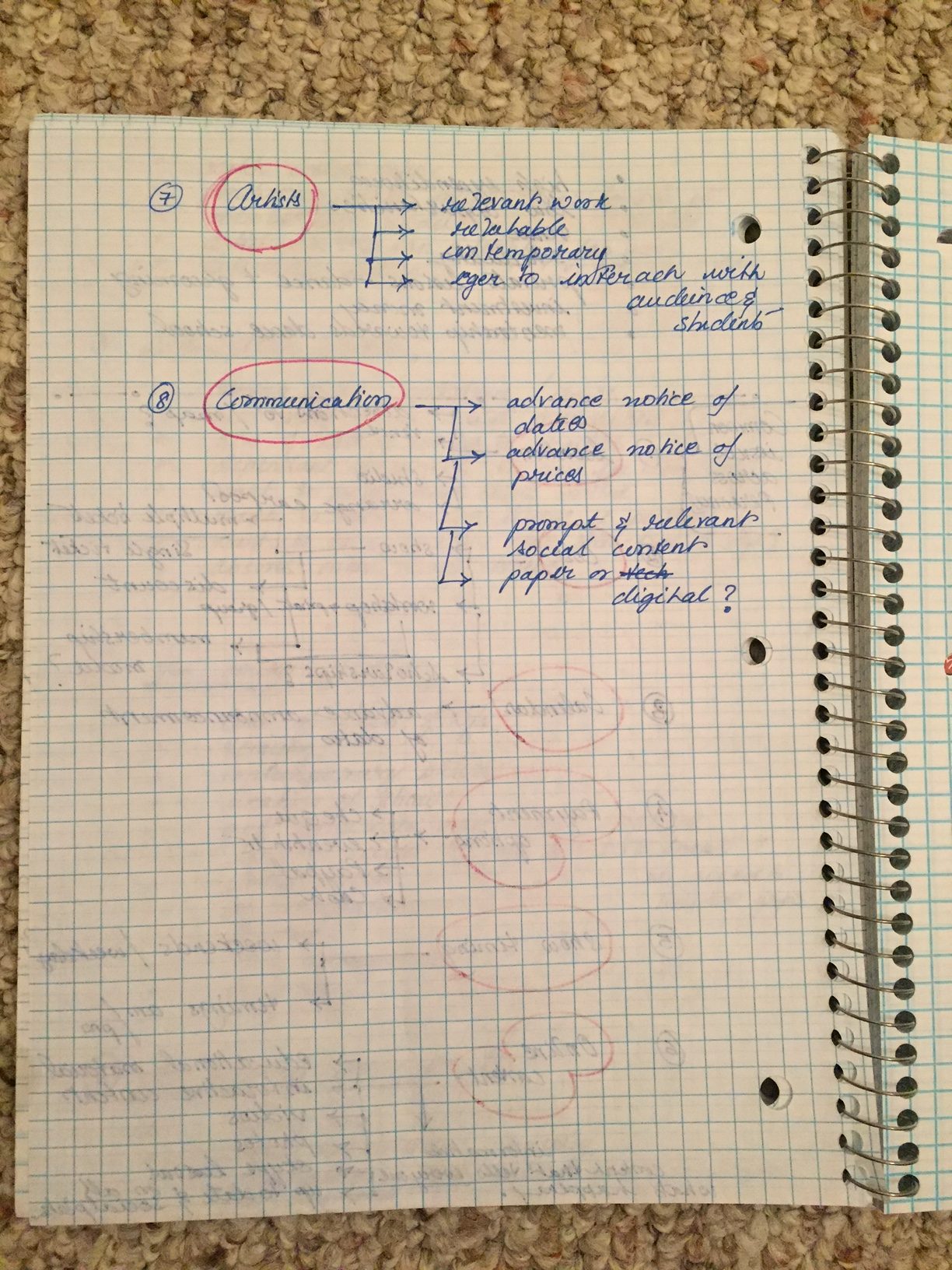 1. 3 of the interview candidates felt that the pricing of the master class workshops offered by the artists were too expensive