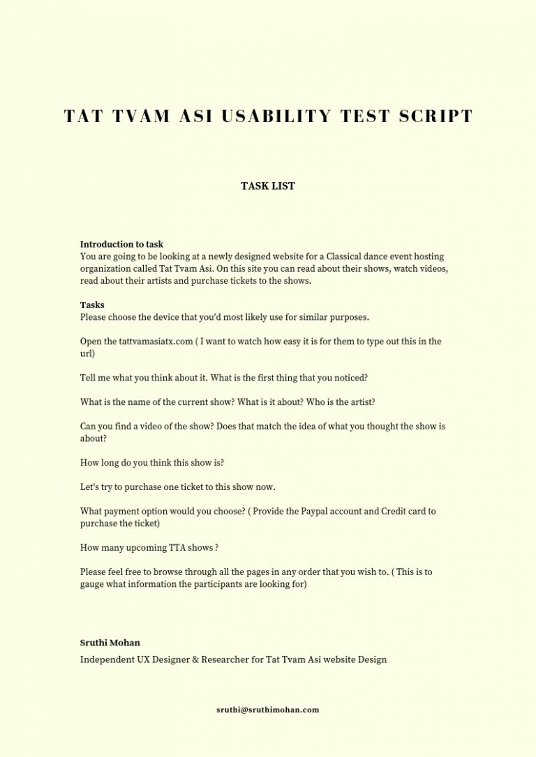 The task list was used to instruct each participant while carefully making notes of their actions during the test.